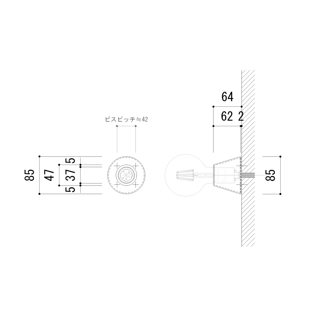 必要最低限のパーツだけで構成されたシンプルな意匠性で、電球のフォルムや光の表情をダイレクトに楽しめるのも魅力。空間にちょっとアクセントを加えたい、というニーズにピッタリです。