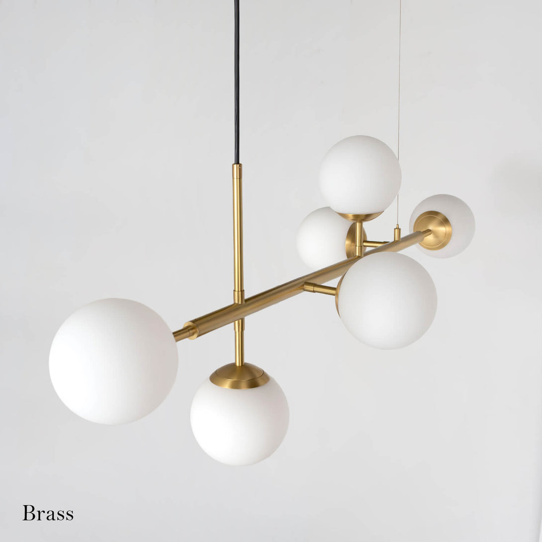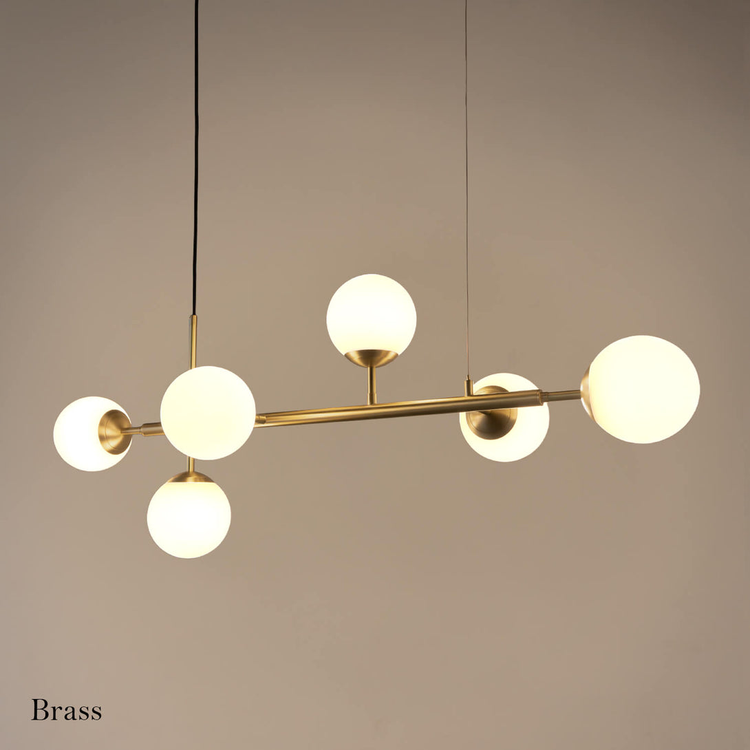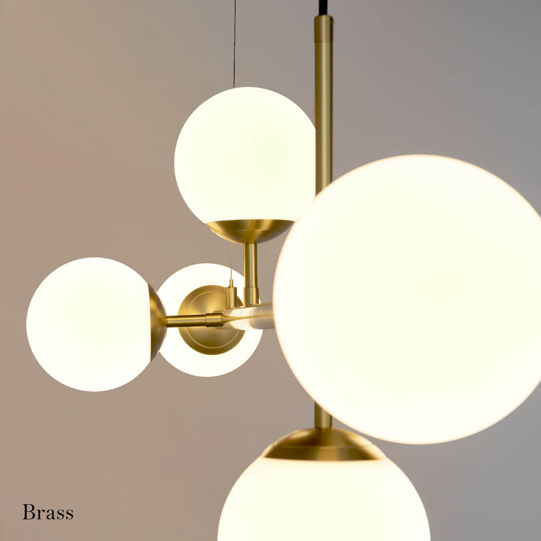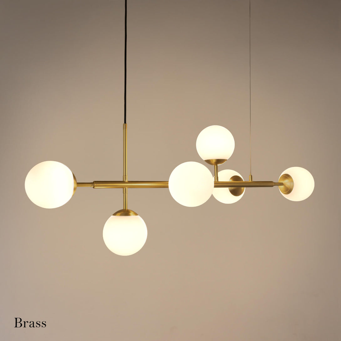 ランダムに配置されたガラスシェードが印象的な多灯照明。