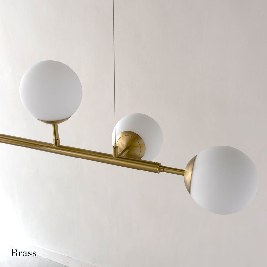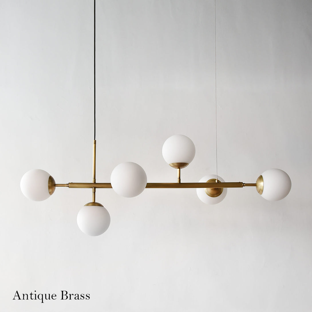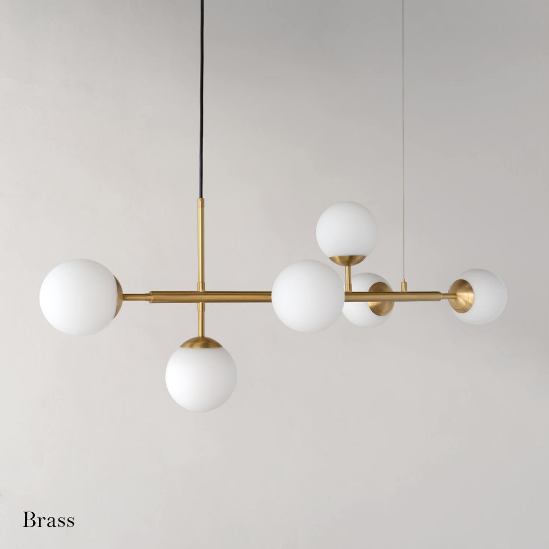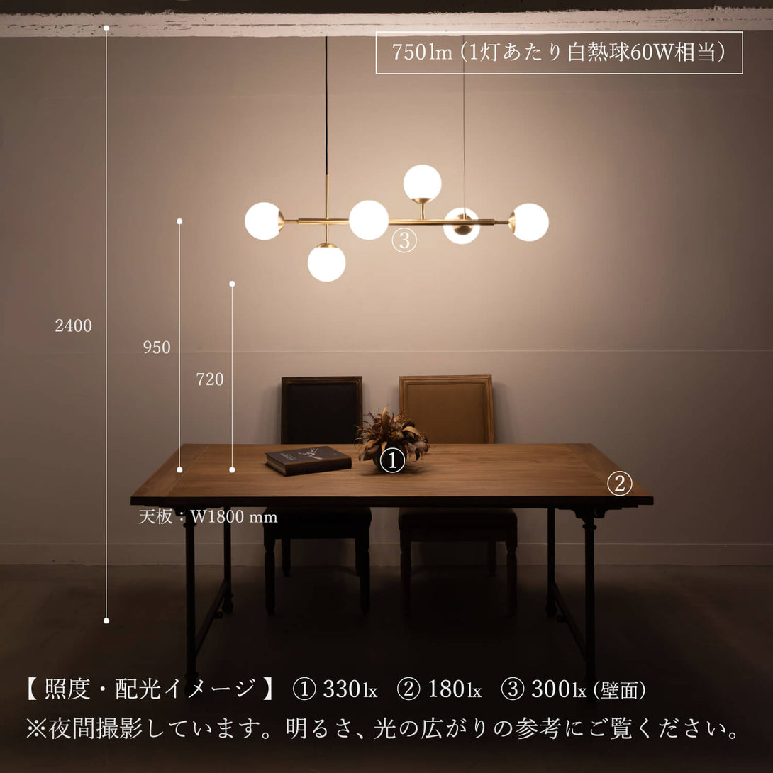 ランダムに配置されたガラスシェードが印象的な多灯照明。