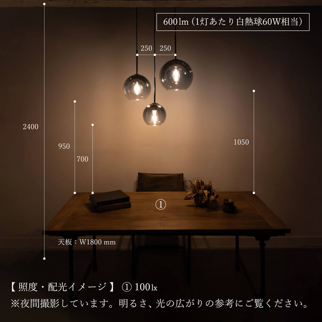 グラデーションによってガラス色の印象が和らぎ、主張しすぎることなく意外なほど様々な空間に合わせやすい照明です。
