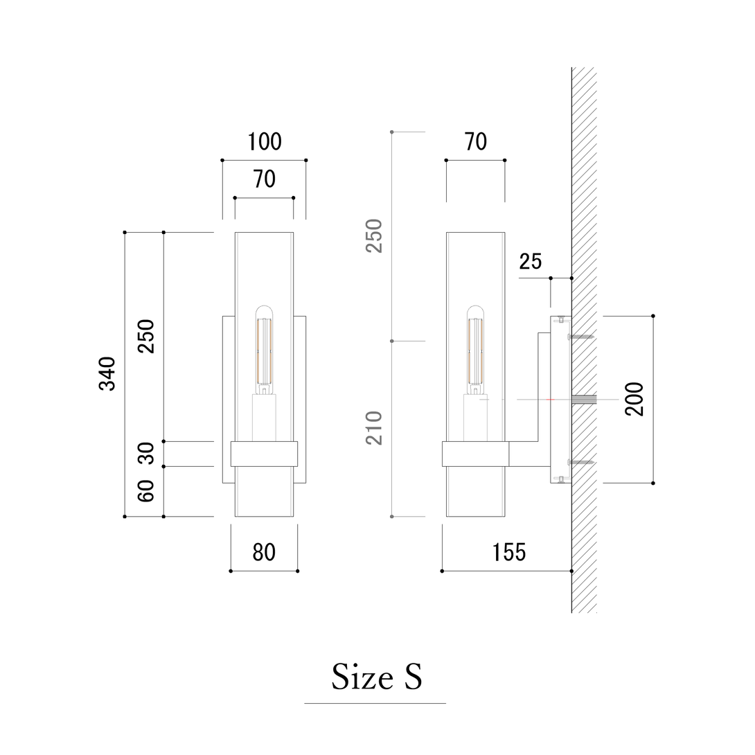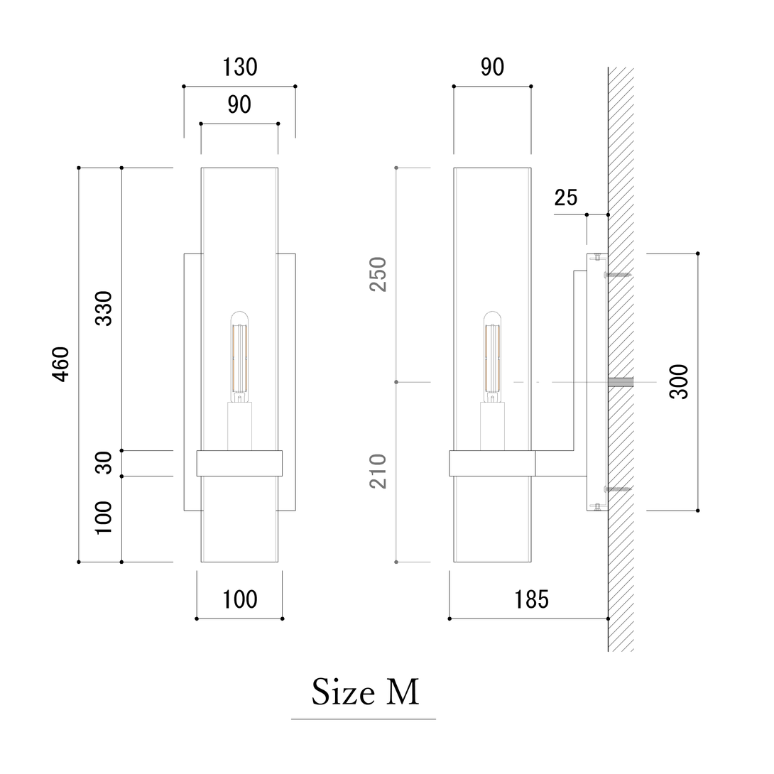 直線と円形で構成された真鍮フレームと、円筒型のガラスシェードという実にシンプルなデザイン。バランスのよいサイズ感と素材感が非常に使いやすいウォールライトです。