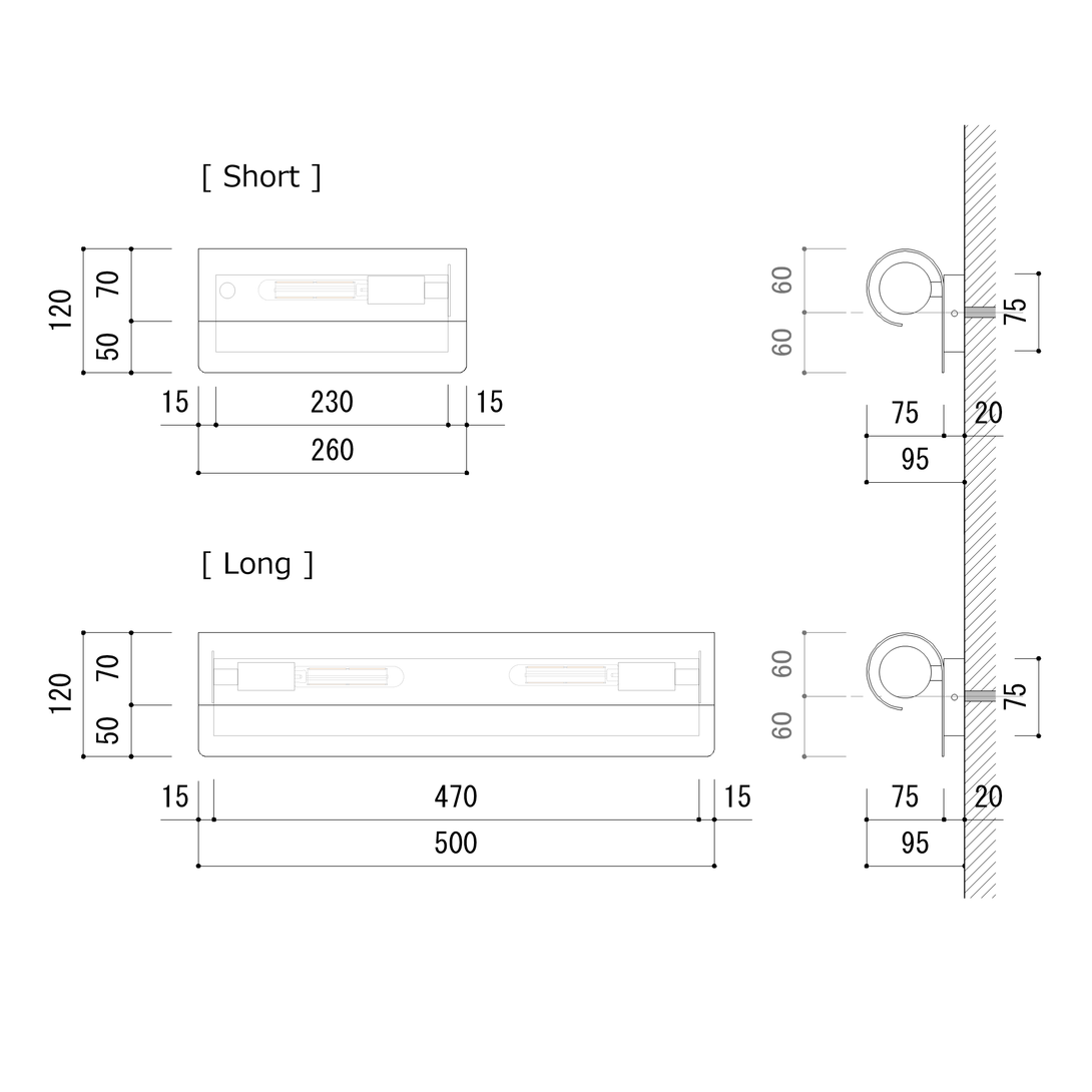 ■サイズ : W500×D95×H120mm
