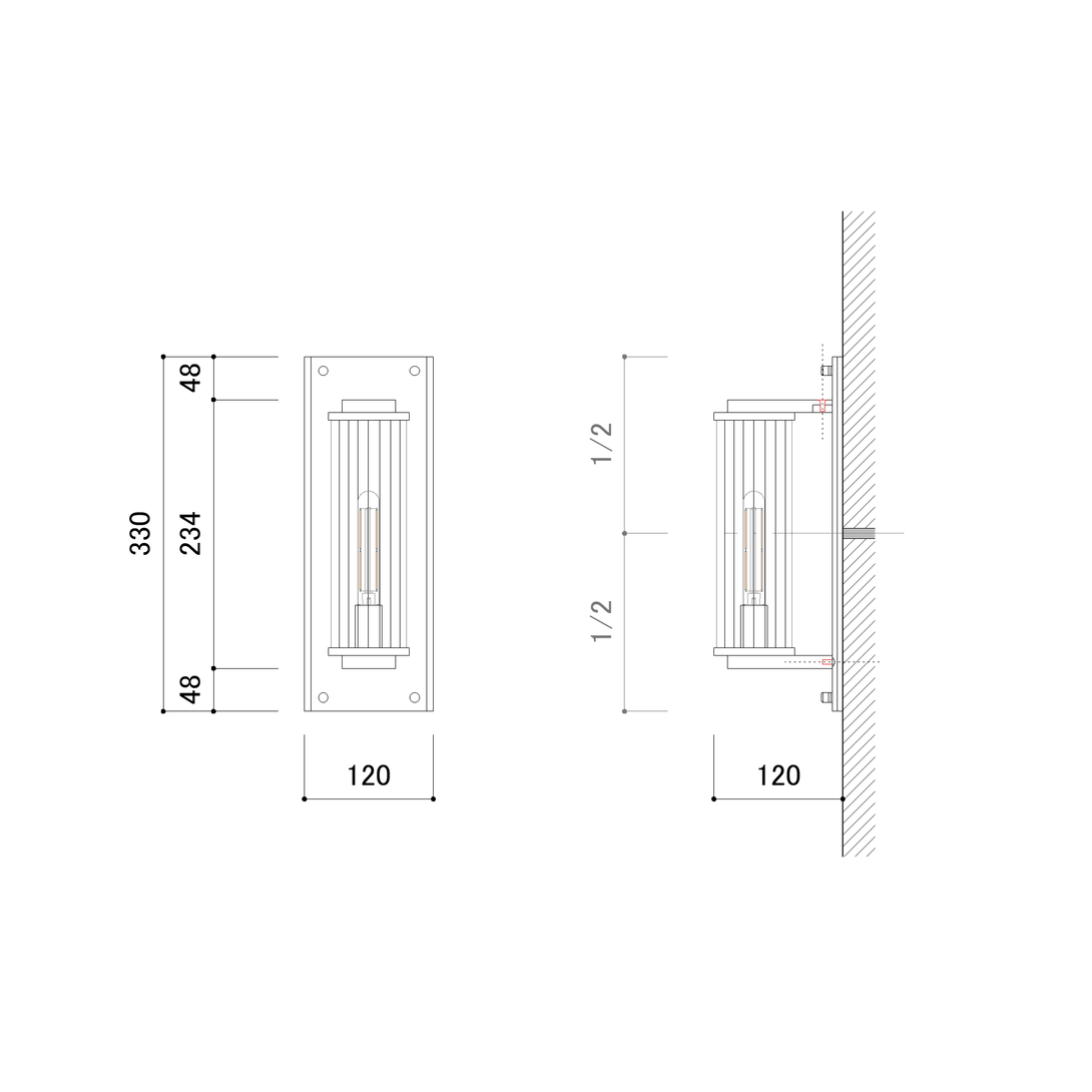 ベースプレートから持ち出された上下のアームにしっかりとホールドされたガラスシェードは細い溝を掘ったリブガラスを採用。