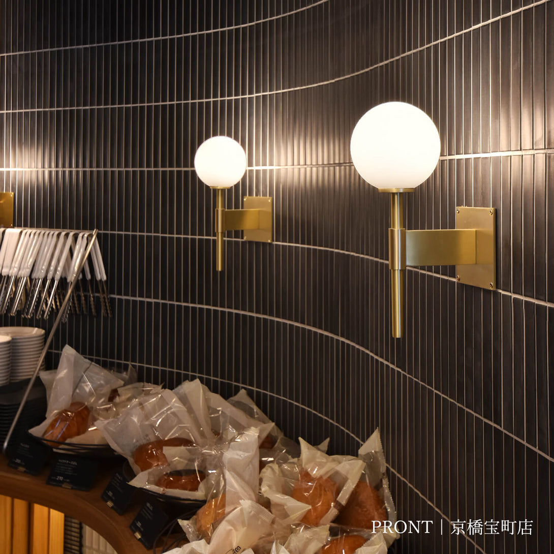 小ぶりな乳白シェードが全体の印象を柔らかく演出しながら,しっかりと存在感を打ち出してくれるインダストリアルなウォールライトです。