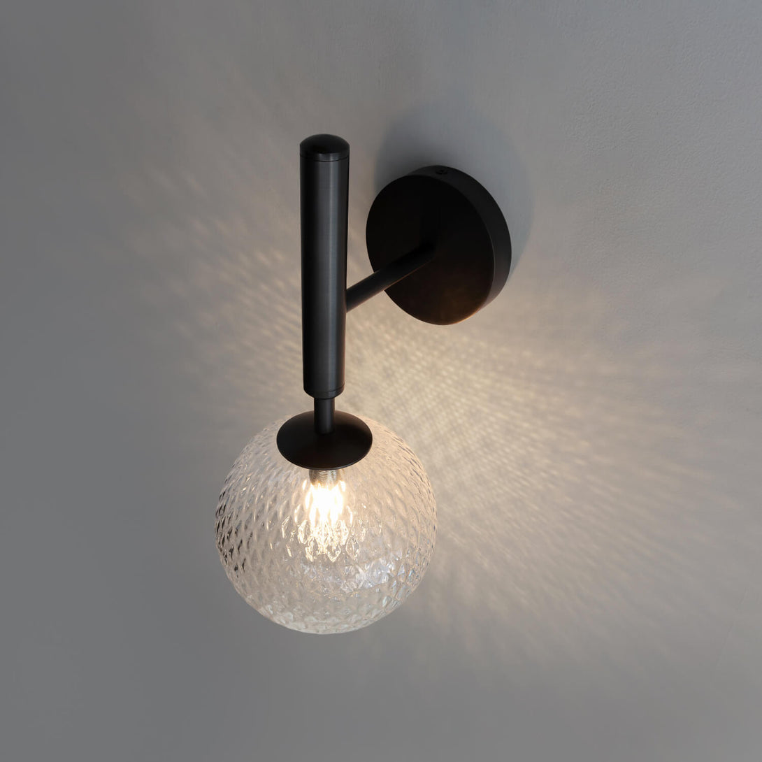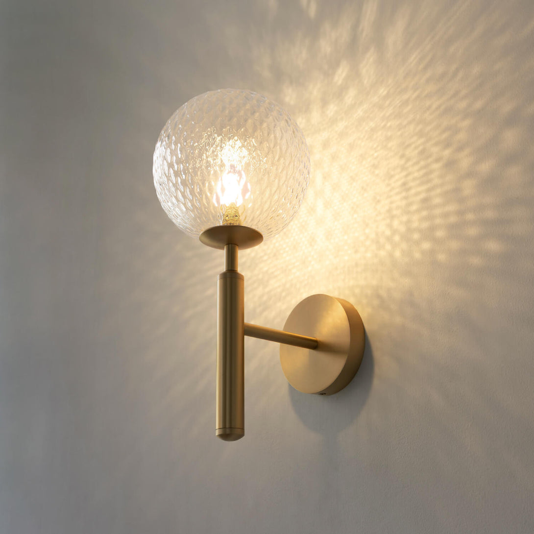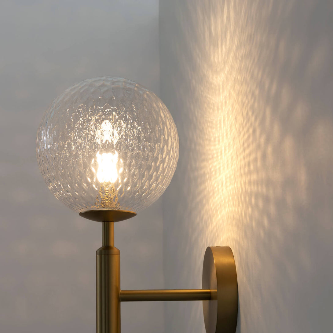 シンプルかつエレガントなガラスグローブが目を引くウォールライト。