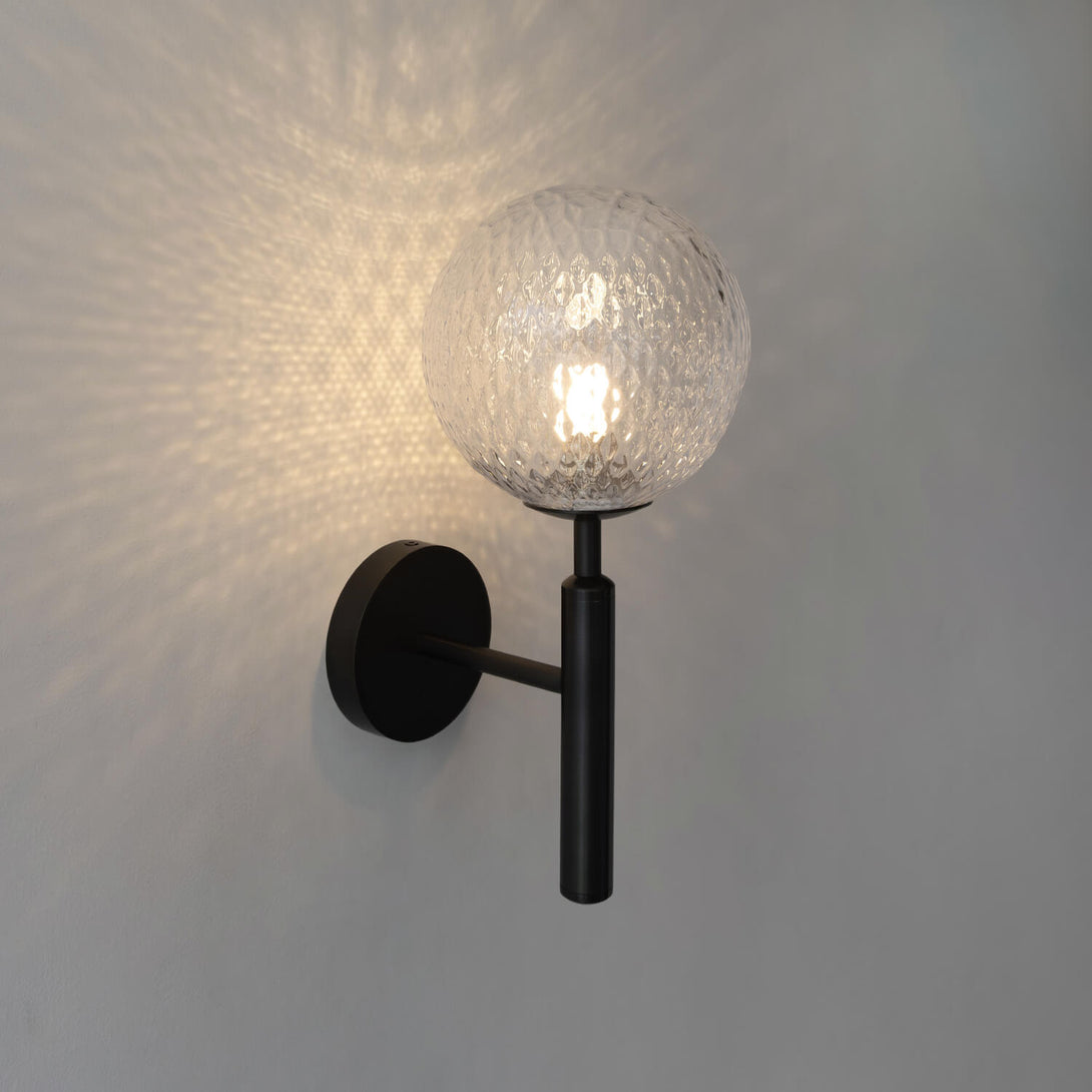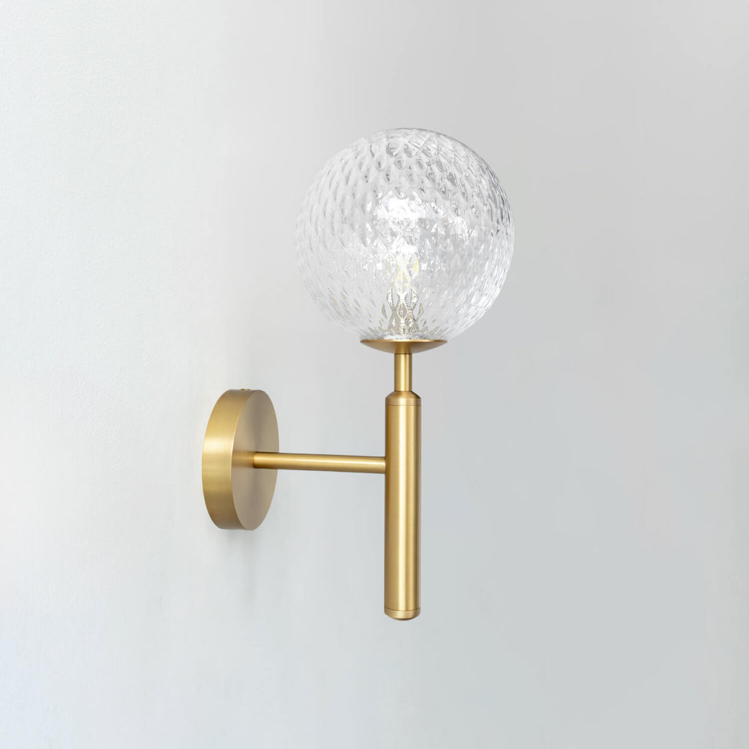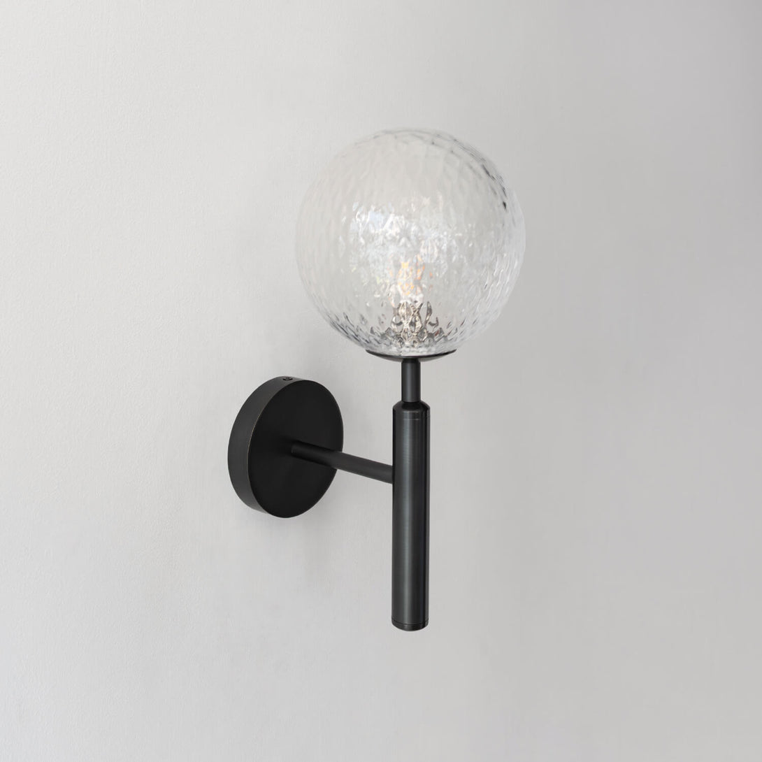 シンプルかつエレガントなガラスグローブが目を引くウォールライト。