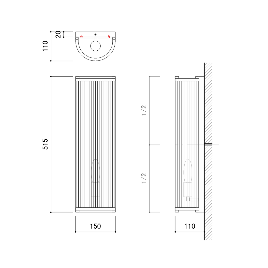 細く繊細な真鍮素材で組まれたクラシックなフォルムと細いガラス棒で構成されたウォールライト。